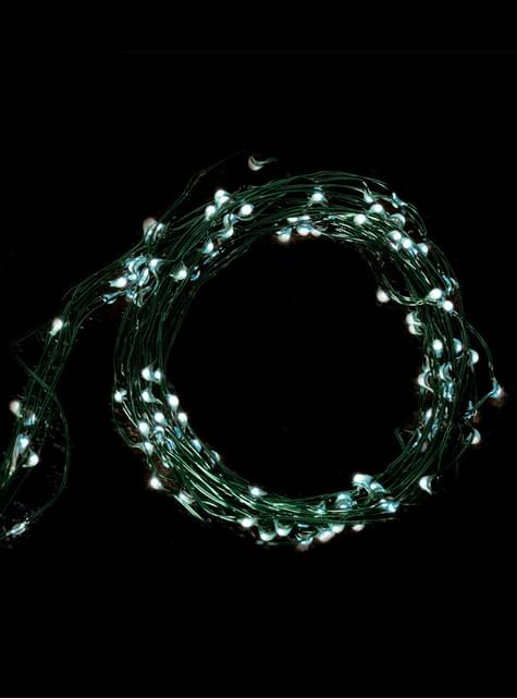 Zahŕňa: 10 m zelený drôt so 100 mikro LED svetlami (studená biela) a ovládač s 8 funkciami. S 220V zástrčkou.