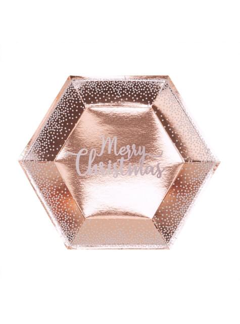 8 šesťuholníkových tanierov Merry Christmas v ružovo zlatej farbe (27 cm) - Pink Christmas