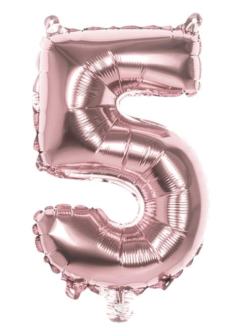 Balónik číslo 5 z ružového zlata s rozmermi 36 cm