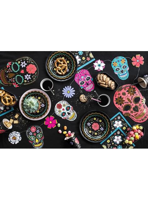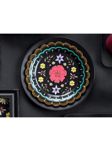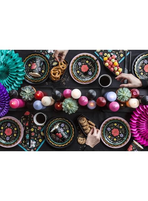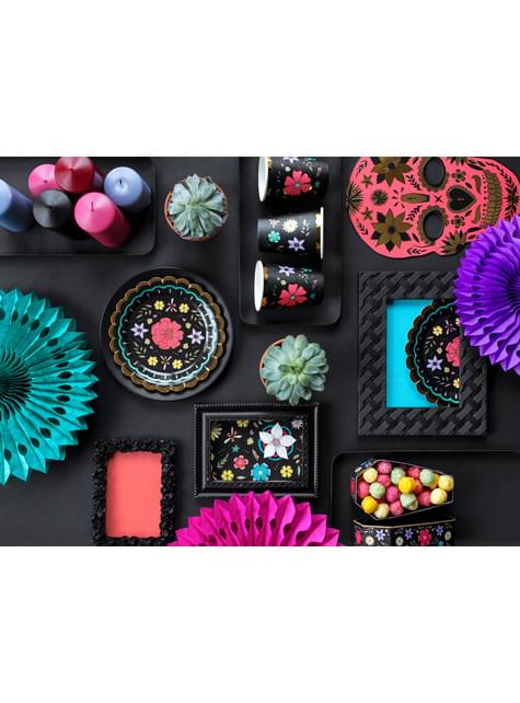 Sada 6 dosiek čierneho papiera s viacfarebnými kvetmi - kolekcia Dia de Los Muertos