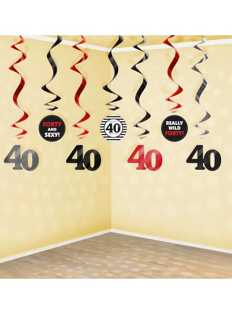 Sada 7 "40" viacfarebných závesných špirál - milník narodeniny